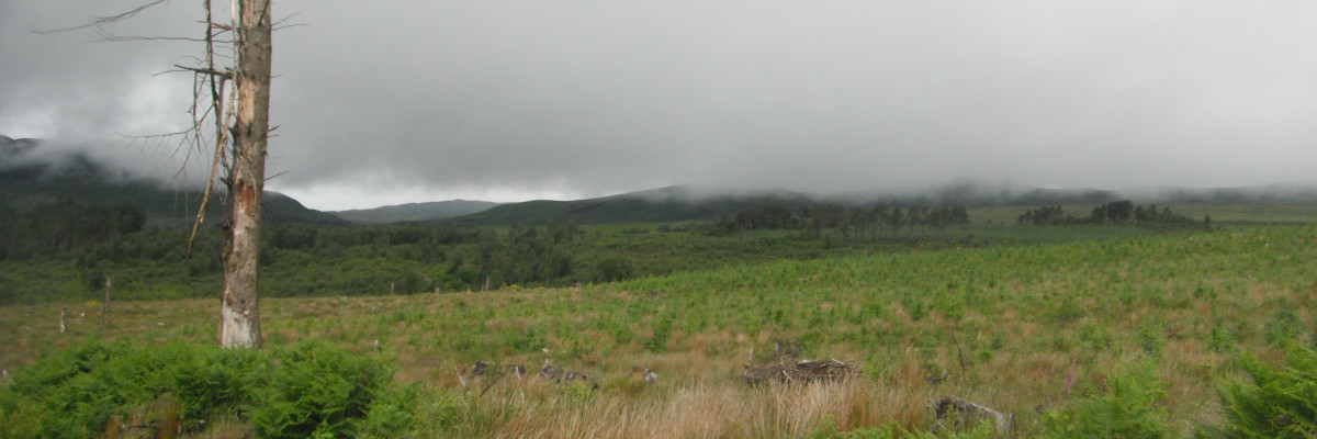Up on Garadhban I could see Loch Lomond – a vast, granite grey mass sitting below a low lying swirl of mist. The heath was exposed and desolate, covered in windswept bracken and dead trees with rotten limbs hanging off their trunks (I mean woody limbs, not human ones) – a terrain in perpetual conflict with the elements. It felt brilliantly desolate up there with not another soul in sight.