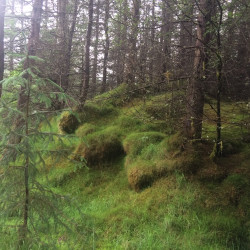 Back down at loch level, the path twists and turns through a forest of Elm, Oak, Beech, Willow, Alder, Larch and Scots Pine. It felt quite serene after the wasteland of Garadhban. In Wildwood, Roger Deakin writes that woodland people can identify the tree by the sound of the wind blowing through its leaves. In Wild, Jay Griffiths talks about how the Inuit read the landscape through sound – the howl of the wind whipping around glaciers, the creaking and crunching of ice shifting, the burble of sea squeezing through holes in cave walls and ice moving above the changing tides. The terrain is in perpetual motion and knowing the sounds is essential for survival (you should be ok in this forest though – but its a great place to just listen).