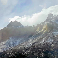 The Torres del Pain is full of colours and moods. Each section of the trek offers another version of wilderness: jagged peaks, intensely blue glaciers, forests and wild flowers, turquoise lagoons, tumultuous rivers swollen with the rain, driving mist and shafts of sunlight; It is spectacularly beautiful. As I walked up towards Camp Italiano, a huge swathe of white cloud skimmed steadily over the surface over the Lago Skottsberg, sweeping in like a tidal wave. It was a strange sight which I appeared to be sharing with absolutely no-one. Despite there being many hikers doing the W-trek, I found myself in perfect solitude for much of it.Â